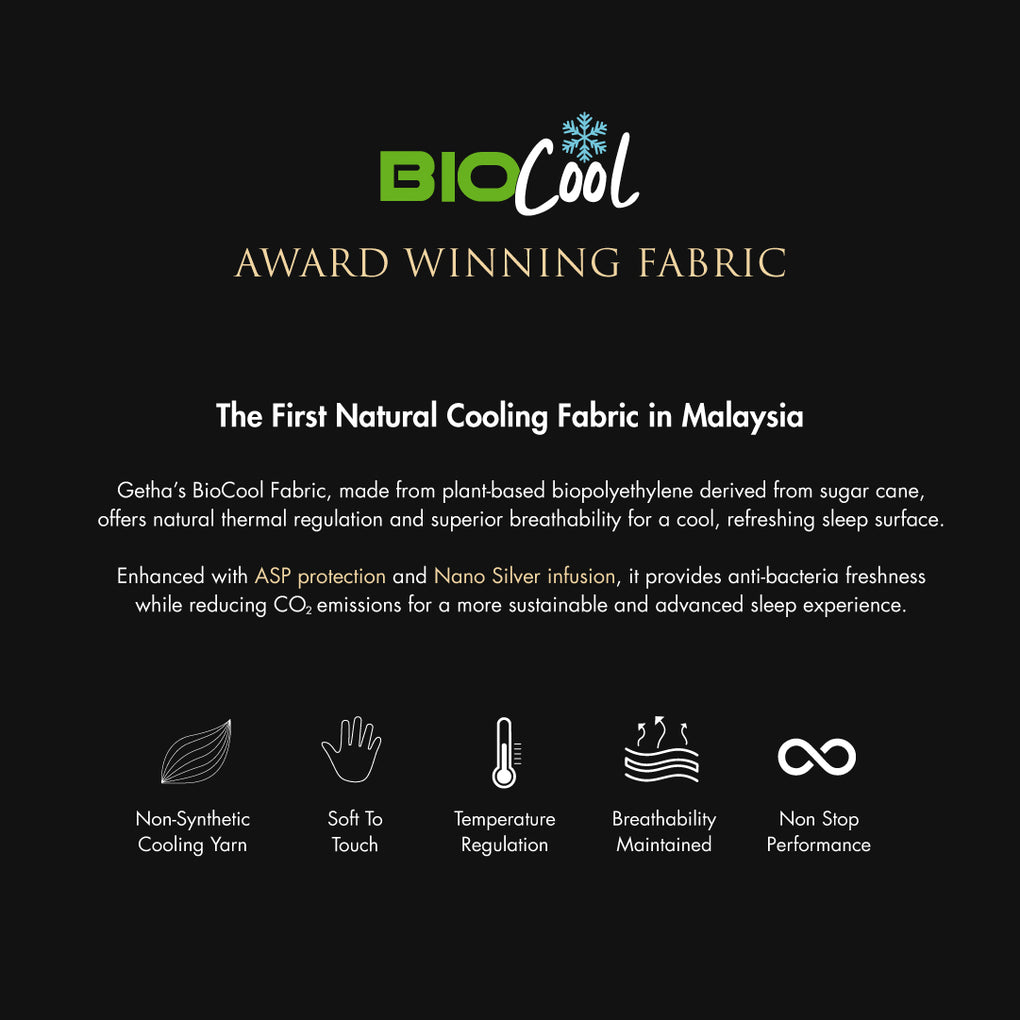 Experience the sleep innovation with the Transforme Miracle Latex Mattress, wrapped in the Award Winning BioCool Natural Cooling Fabric. BioCool is made from plant-based biopolyethylene derived from sugar canes, offering natural thermal regulations and superior breathability for a cool, refreshing sleep surface. Enhanced with Anti-Static Protection (ASP) and Nano Silver infusion, it creates a cleaner, safer, and healthier sleep environment.